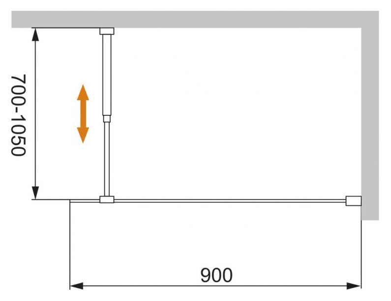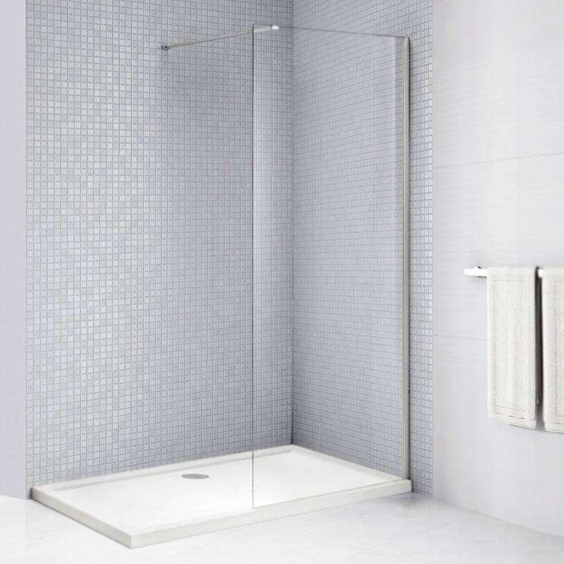 Стеклянная душевая перегородка Cezares Liberta L-1 90 LIBERTA-L-1-90-C-Cr со свободым входом с одной стороны. Верхний телескопический кронштейн позволяет регулировать ширину входа.