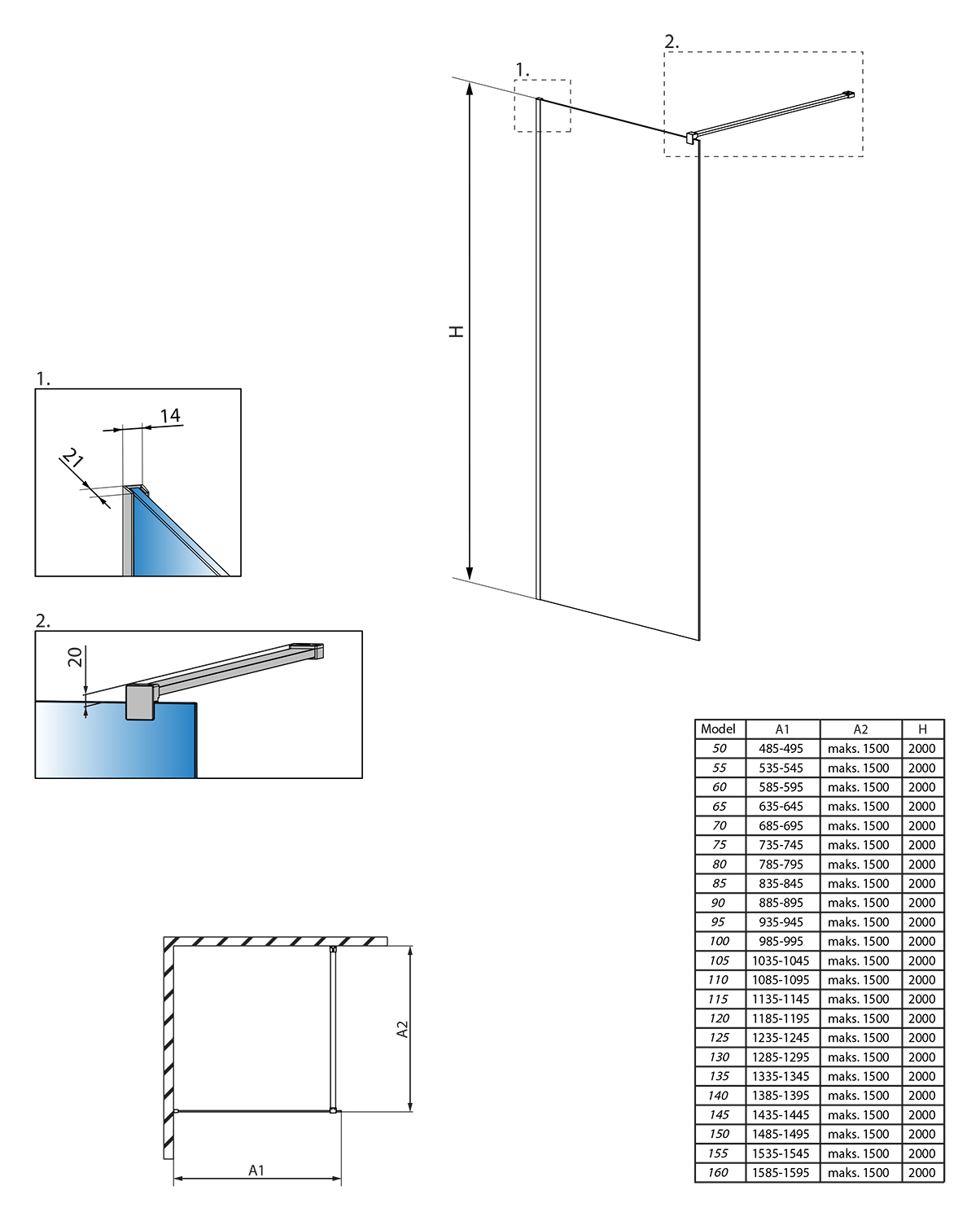 Вертикальное крепление к стене, горизонтальный стабилизатор для большей устойчивости. Устанавливается на пол или поддон.