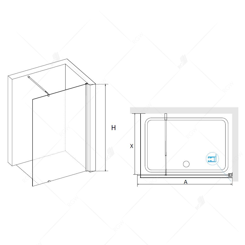 Стеклянная душевая перегородка RGW Walk In WA-02 90 04100209-11. Свободный вход. Универсальная установка.