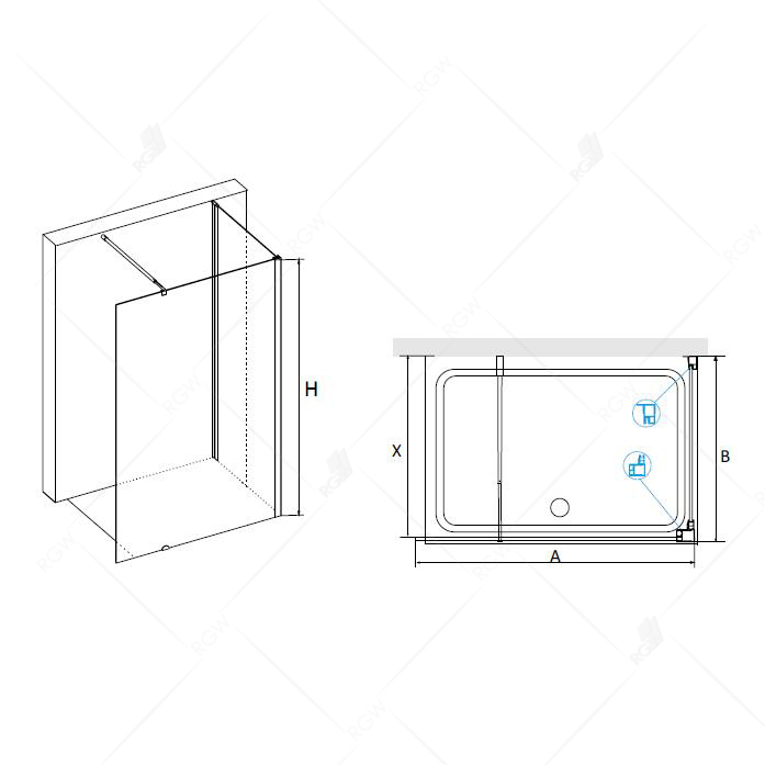 Стеклянная душевая перегородка RGW Walk In WA-05 110x90 04100519-11. Свободный вход. Универсальная установка.