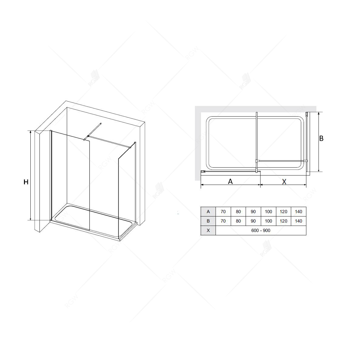 Стеклянная душевая перегородка RGW Walk In WA-20B 90x90 02122099-14. Свободный вход. Универсальная установка.
