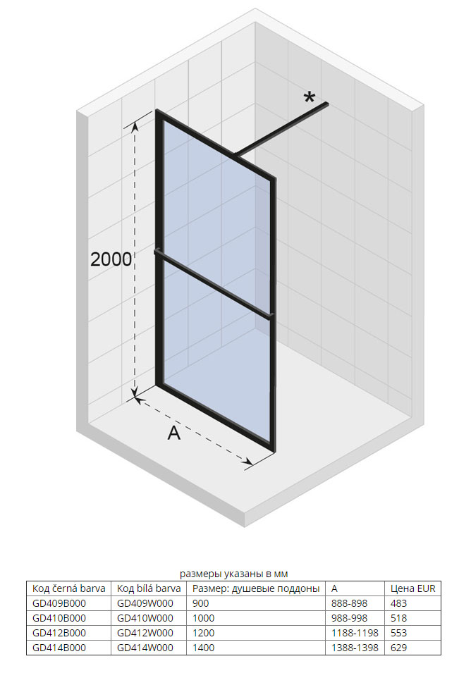 В комплекте поставки: душевая перегородка.