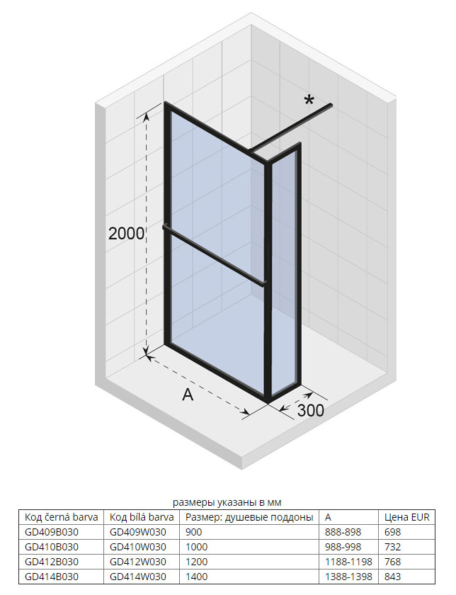 Душевая перегородка Riho Lucid GD402 90х30 GD409B030 профиль Черный стекло прозрачное