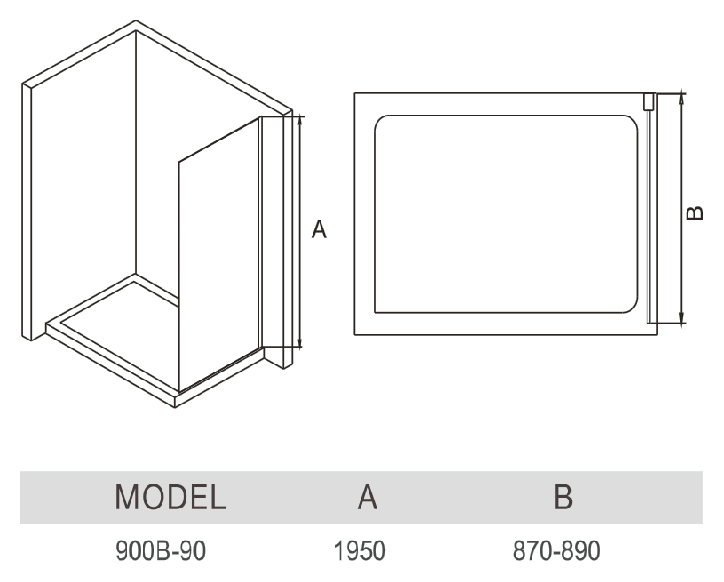 Стеклянная стенка WeltWasser WW900 90 900B-90 для душевого уголка. Регулировка ширины за счет бокового профиля. Надежное стекло 8 мм. Универсальная установка: слева или справа.