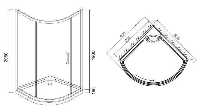 - Габариты (ДхШхВ): 900 х 900 х 1900 мм.