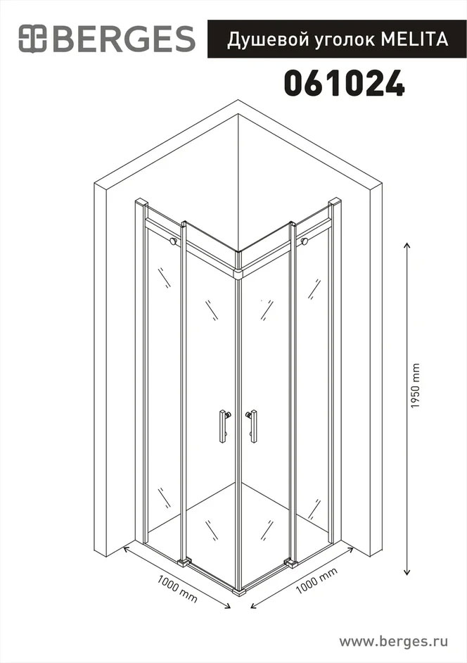 Душевой уголок Berges Wasserhaus Melita 100х100 061024 - отличное решение для современной ванной комнаты.