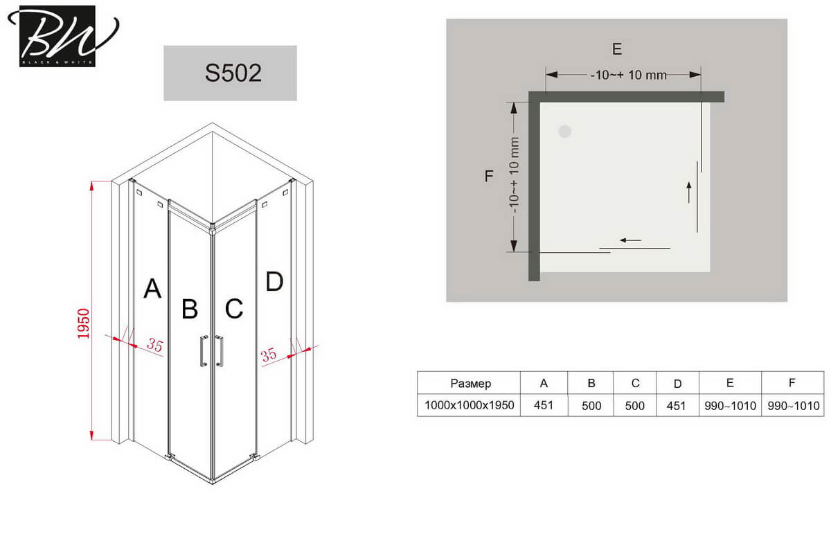Душевой уголок Black&White Stellar Wind S502 прямоугольный профиль Серебристый хром стекло прозрачное
