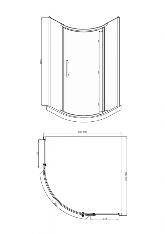 - Габариты, мм (ШхДхВ): 900х900х1950.