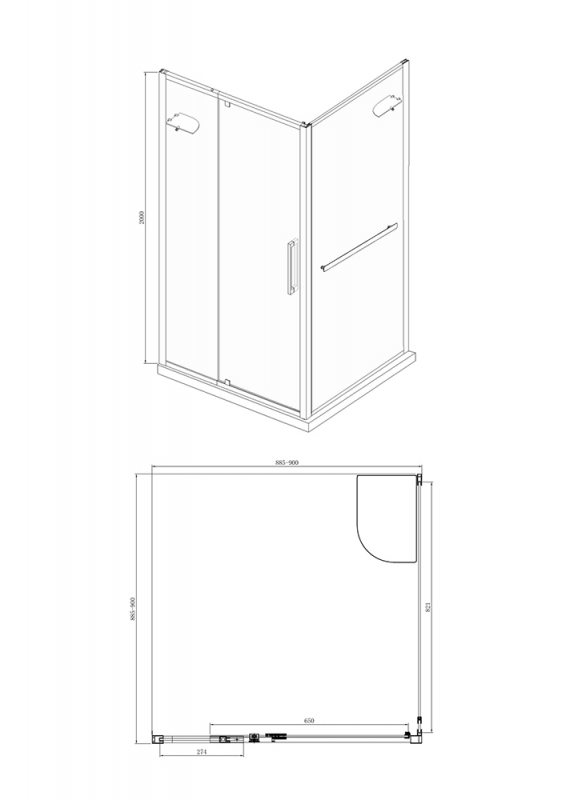 - Габариты, мм (ШхДхВ): 900х900х2000.