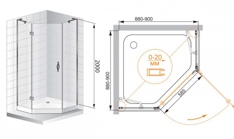 - Монтаж осуществляется либо на поддон, либо на пол, оборудованный для душа.
