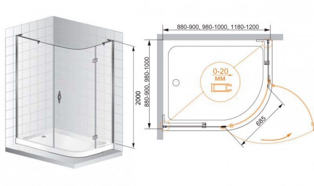 - Монтаж осуществляется либо на поддон, либо на пол, оборудованный для душа.