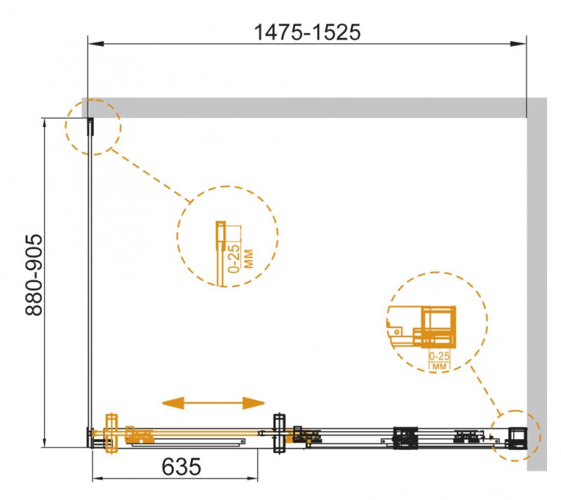 Регулировка ширины предусмотрена за счет боковых профилей.
