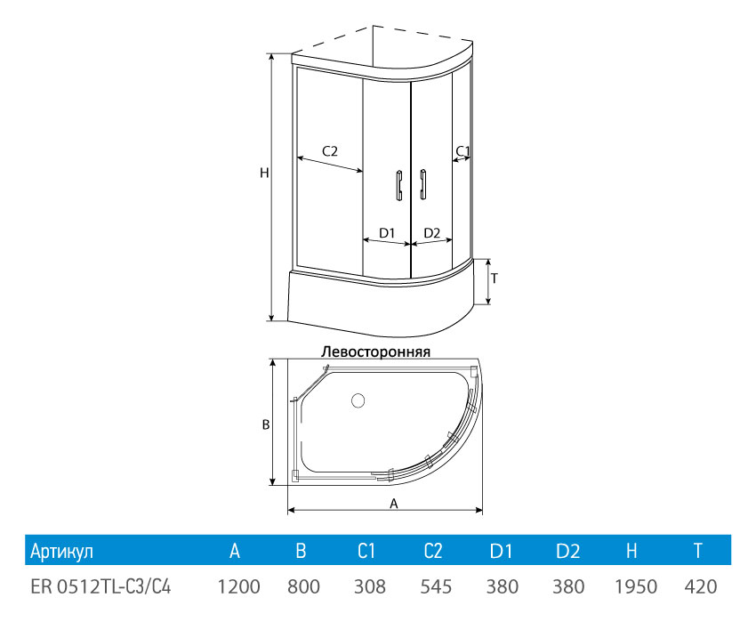 Душевой уголок Erlit Comfort ER0512TL-C3 120x80 см.