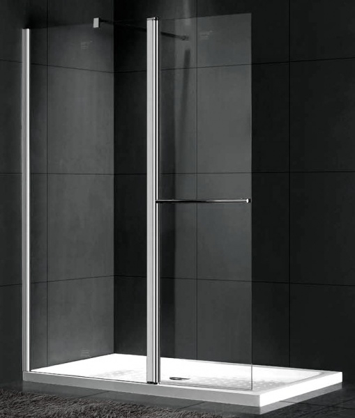 Двери: одна распашная Стекло: закаленое прозрачное, 6 мм Профиль: полированный хром Особенности: