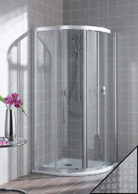 Душевой U-образный уголок Kermi Atea AT Q20 09020VAK+Geometrti. Прозрачное стекло с декором Geometrti.