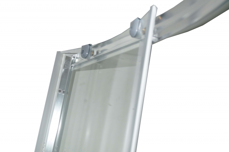 Полотно двери изготовлено из безопасного закаленного стекла толщиной 4 мм.