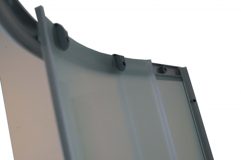 Полотно двери изготовлено из безопасного закаленного стекла толщиной 4 мм.