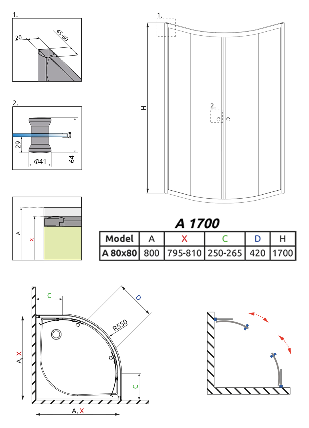 Стеклянный душевой уголок Radaway Classic A 1700 80x80 30011-04-01 в форме четверти круга, с элегантным белым профилем, с двумя раздвижными дверьми. Устанавливается на поддон или непосредственно на пол. Прочное закаленное стекло безопасно в случаях повреждений. Магнитные уплотнители на дверях обеспечивают герметичность и устойчивы к влаге и изменениям температуры.