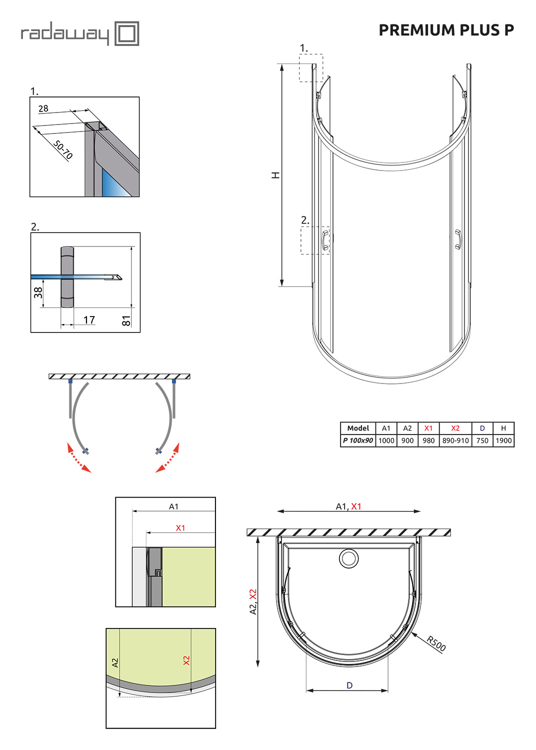 Стеклянный полукруглый душевой уголок Radaway Premium Plus P 1900 100x90 33300-01-01N с двумя раздвижными дверьми, с элегантной хромированной фурнитурой. Устанавливается на поддон или непосредственно на пол. Прочное закаленное стекло безопасно в случаях повреждений. Магнитные уплотнители на дверях обеспечивают герметичность и устойчивы к влаге и изменениям температуры. Для простоты очистки предусмотрена расфиксация дверей.