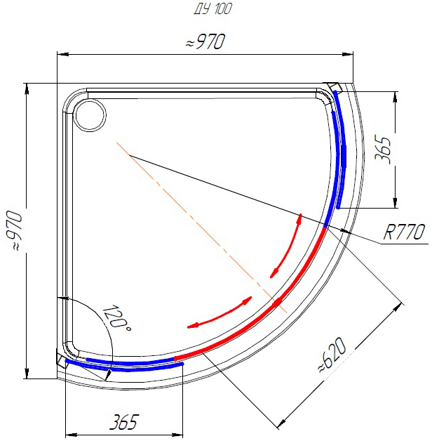 Радиальный душевой уголок Radomir 100x100 1-03-1-0-0-0031 оснащен раздвижными дверцами с матовым стеклом и белым профилем. Он отлично впишется в интерьер любой ванной комнаты. В комплект входит поддон с противоскользящей поверхностью, изготовленный из высококачественного акрила.