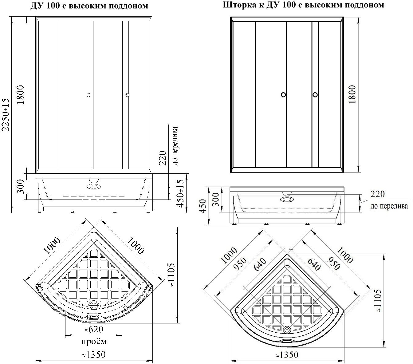 - Высота поддона - 450 мм, глубина - 300 мм.