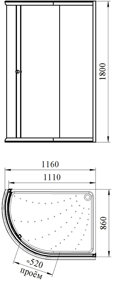 Радиальный асимметричный душевой уголок Radomir 120x90 1-09-1-0-0-0101 оснащен раздвижной дверцей с матовым стеклом и белым профилем. Он отлично впишется в интерьер любой ванной комнаты.