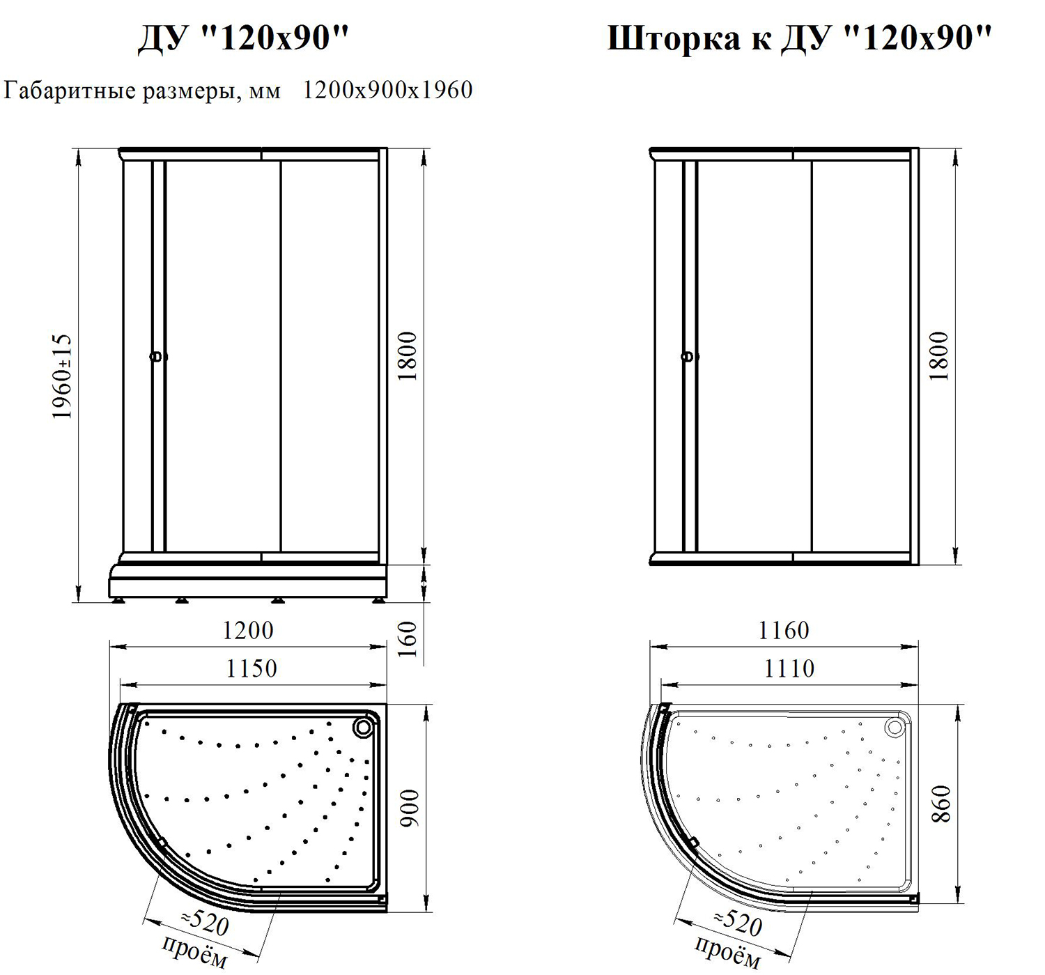 - Высота поддона - 160 мм, глубина - 50 мм.
