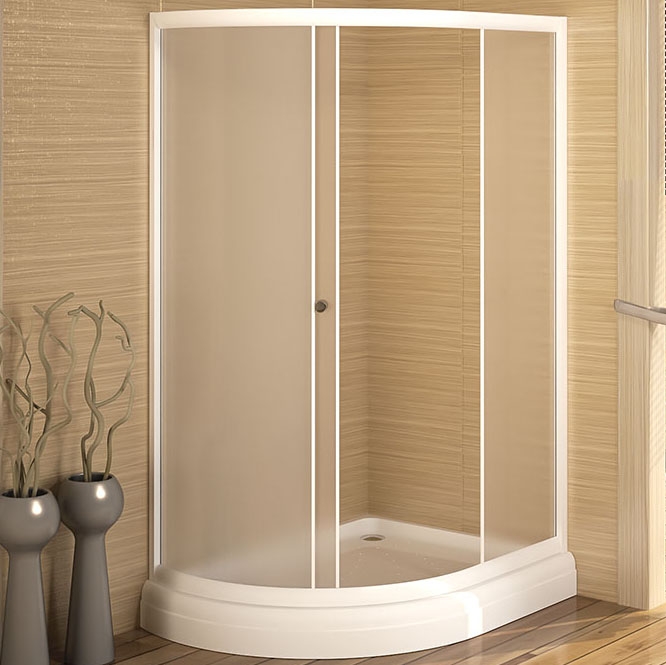 Радиальный асимметричный душевой уголок Radomir 120x90 R 1-03-1-2-0-0101 оснащен раздвижной дверцей с матовым стеклом и белым профилем. Он отлично впишется в интерьер любой ванной комнаты. В комплект входит поддон с противоскользящей поверхностью, изготовленный из высококачественного акрила.