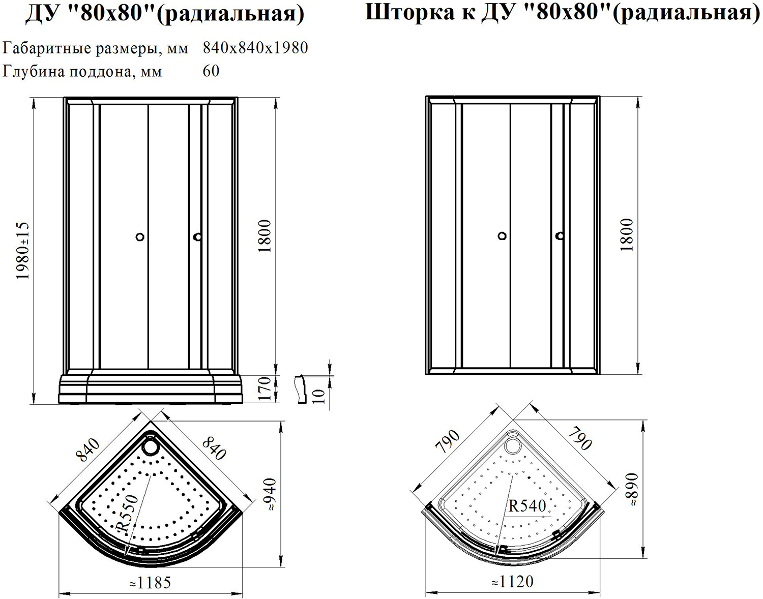 - Высота поддона - 170 мм, глубина - 60 мм.