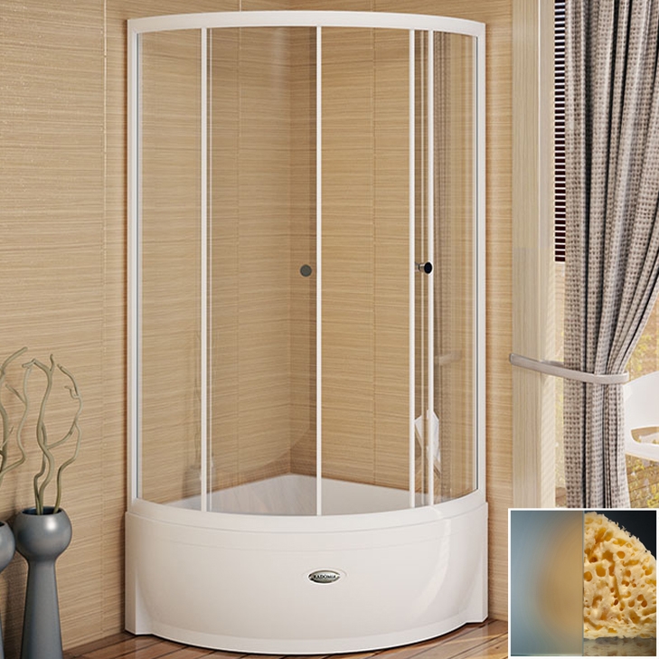 Радиальный душевой уголок Radomir 90x90 1-03-1-0-0-0021 оснащен раздвижными дверцами с матовым стеклом и белым профилем. Он отлично впишется в интерьер любой ванной комнаты. В комплект входит высокий поддон с противоскользящей поверхностью, изготовленный из высококачественного акрила.