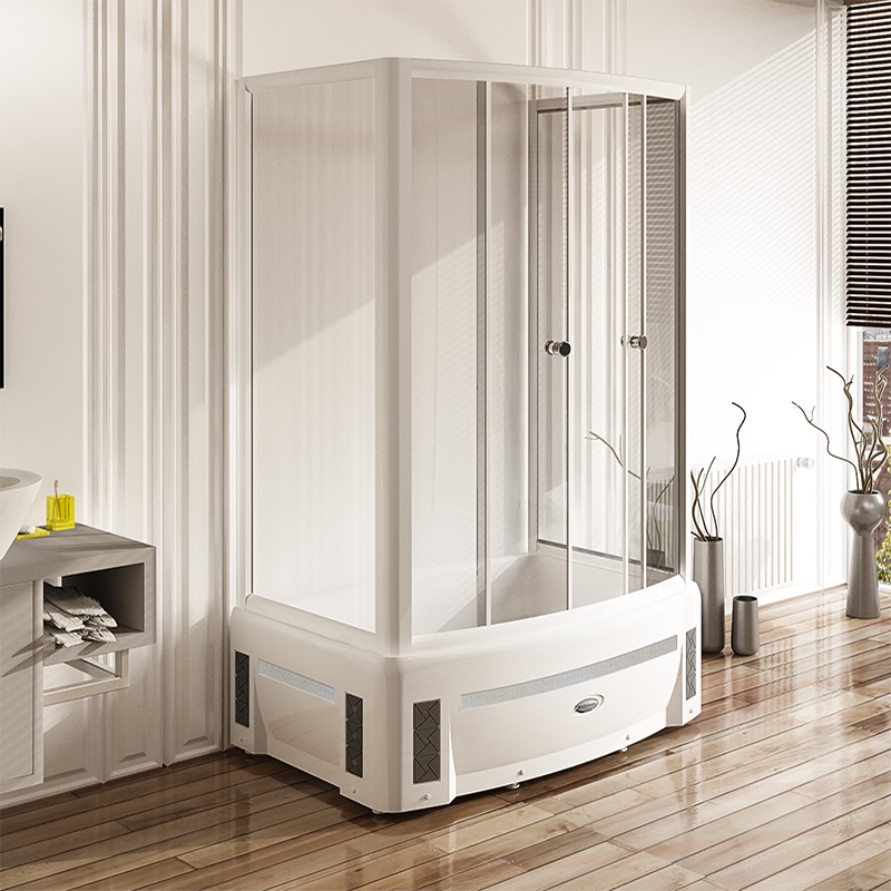 Прямоугольный душевой уголок Radomir Диана 140x95 1-03-1-0-0-0140 оснащен раздвижными дверцами с прозрачным стеклом и белым профилем. Он отлично впишется в интерьер любой ванной комнаты. В комплект входит высокий поддон с противоскользящей поверхностью, изготовленный из высококачественного акрила. Экран для поддона украшен орнаментом.