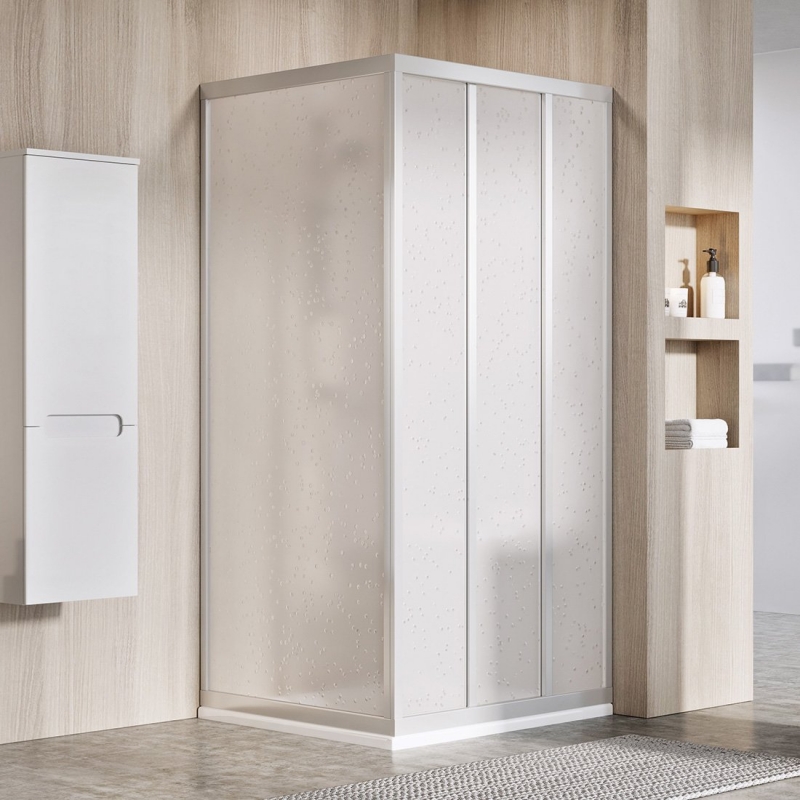 Душевой уголок Ravak Supernova ASDP3-110 S 00VD0U0211 состоящий из одной неподвижной части и трехэлементной раздвижной двери.