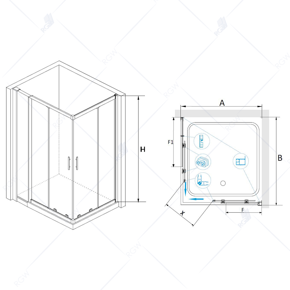 Прямоугольный стеклянный душевой уголок RGW Hotel HO-42 90x120 03064292-11. Раздвижные двери с угла. Универсальная установка.