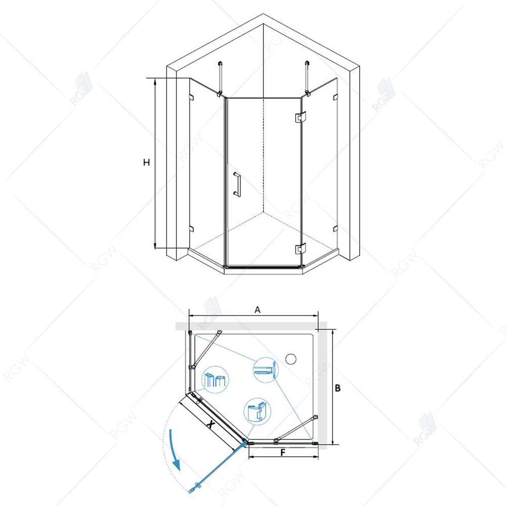Стеклянный душевой уголок RGW Hotel HO-82 90x90 01068299-11. Распашная дверь на вертикальных петлях.