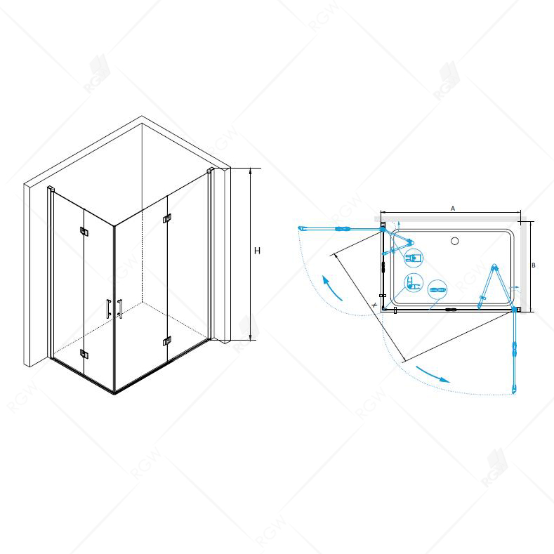 Прямоугольный стеклянный душевой уголок RGW Leipzig LE-46 70x100 06124670-11. Распашные складные маятниковые двери с открытием внутрь или наружу.