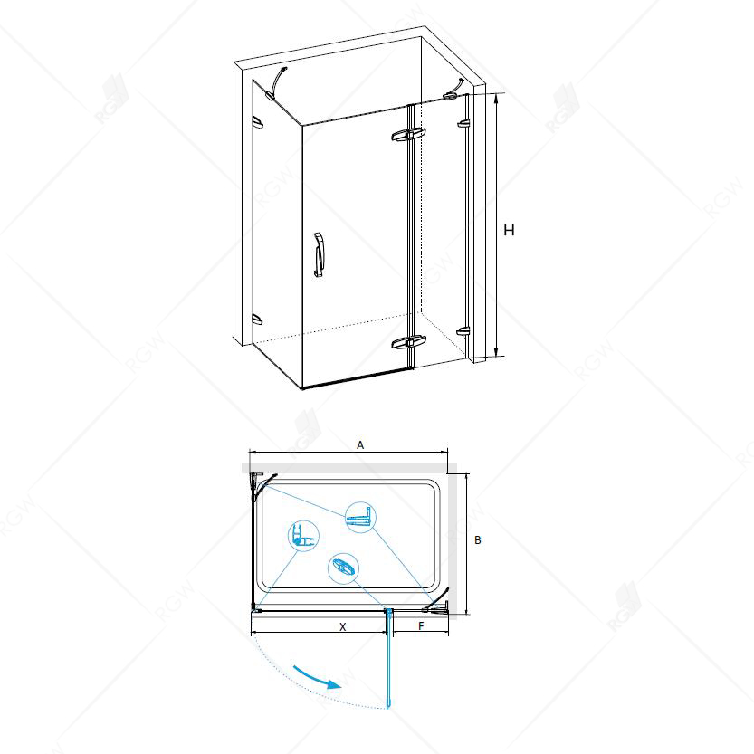 Прямоугольный стеклянный душевой уголок RGW Safari SA-41 90x120 02034192-11 с распашной дверью и неподвижным боковым стеклом. Универсальная установка открытия двери.