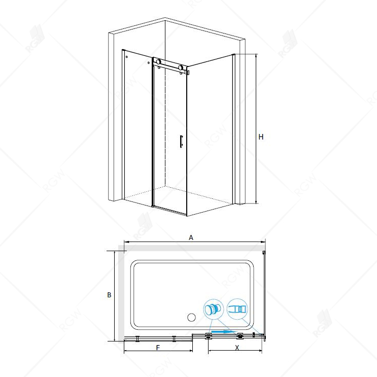 Прямоугольный стеклянный душевой уголок RGW Tornado TO-43 140x100 06074340-11 с раздвижной дверью на больших бесшумных роликах. Универсальная установка.