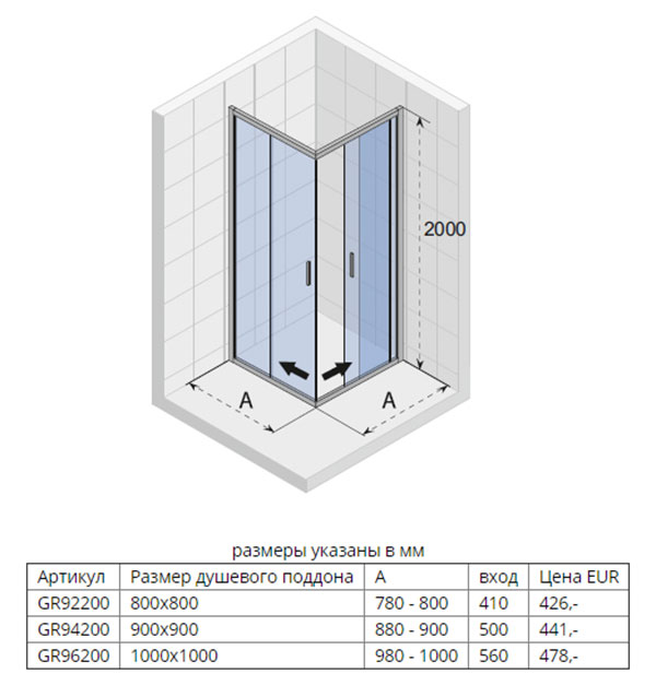 В комплекте поставки: душевой уголок.