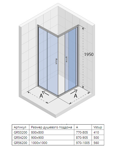 Душевой уголок Riho Hamar GR542 90x90 GR54200 с двумя раздвижными дверцами.