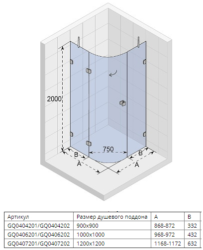 Душевой уголок Riho Scandic Soft Q308 100x100 GQ0406201 с одной дверью, распахивающейся наружу, петли слева.