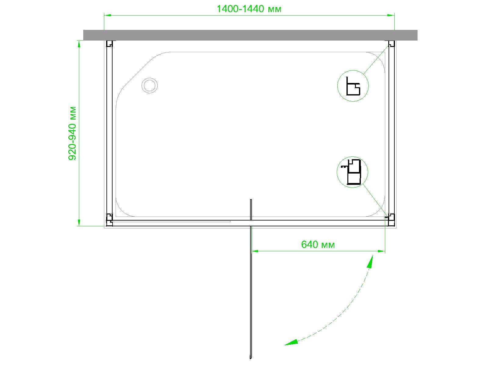 Душевой уголок Royal Bath HV 140х90 RB9140HV-C-CH-P без поддона профиль Хром стекло рифленое