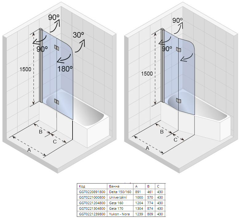 Шторка для ванны Riho Nautic 3000 N500 Universal 100x150 GGT0221000800, складная универсальная, состоящая из двух частей. Шторка распахивается внутрь и наружу.