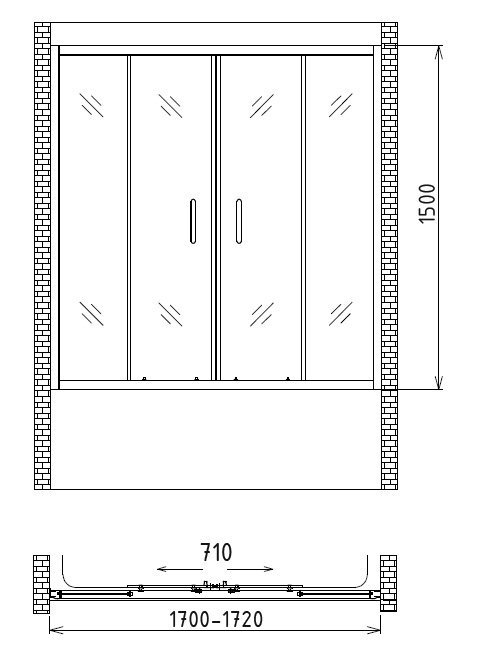 Полотно двери изготовлено из безопасного закаленного стекла толщиной 6 мм.