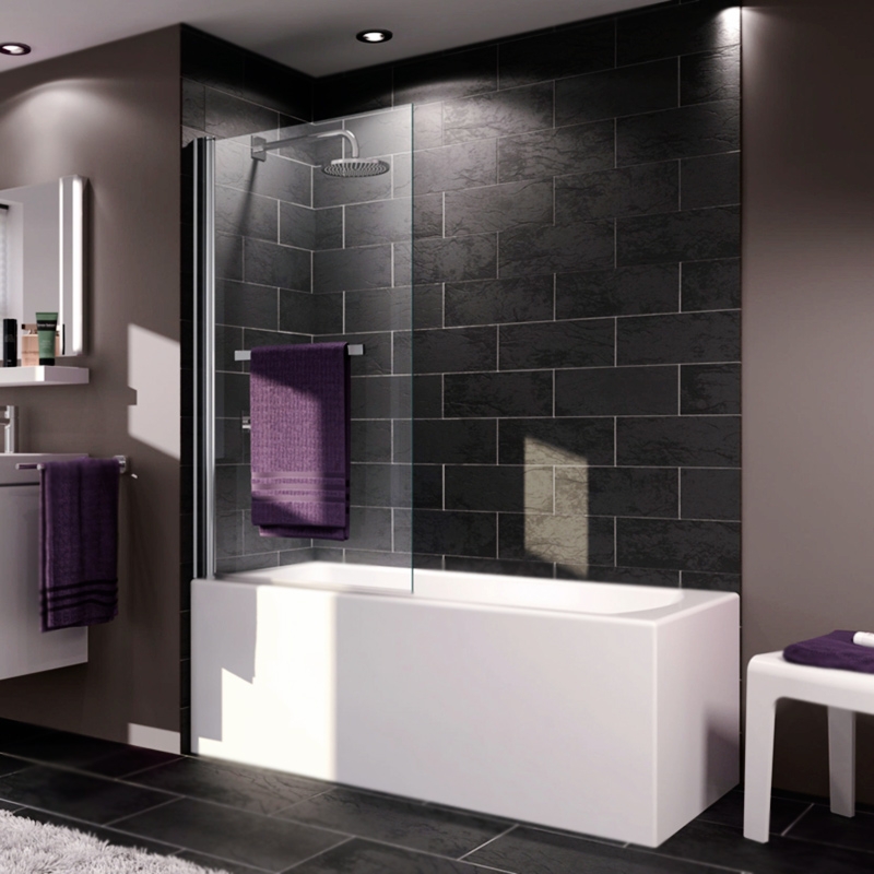 - Стеклянная шторка на ванну Huppe X1 75 односекционная, распашная, с хромированным полотенцедержателем.