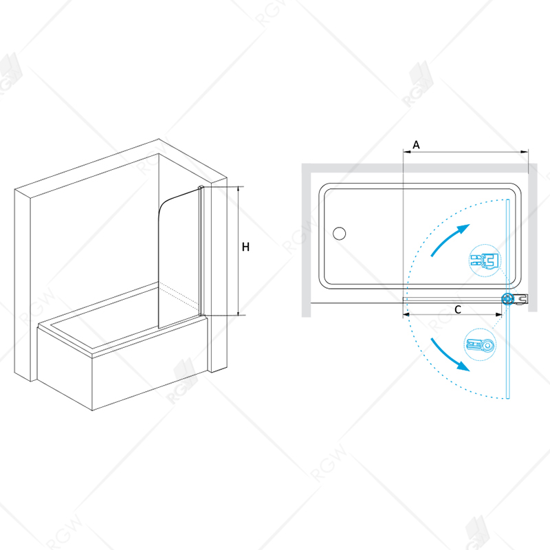 Стеклянная шторка на ванну RGW Screens SC-05 80x150 03110508-11 распашная маятниковая. Универсальная установка с левой или правой стороны.