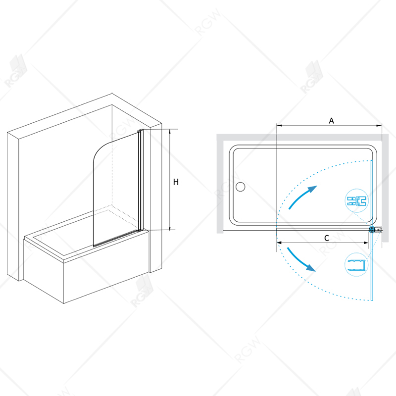 Стеклянная шторка на ванну RGW Screens SC-09 В 80x150 06110908-14 распашная маятниковая. Универсальная установка с левой или правой стороны.