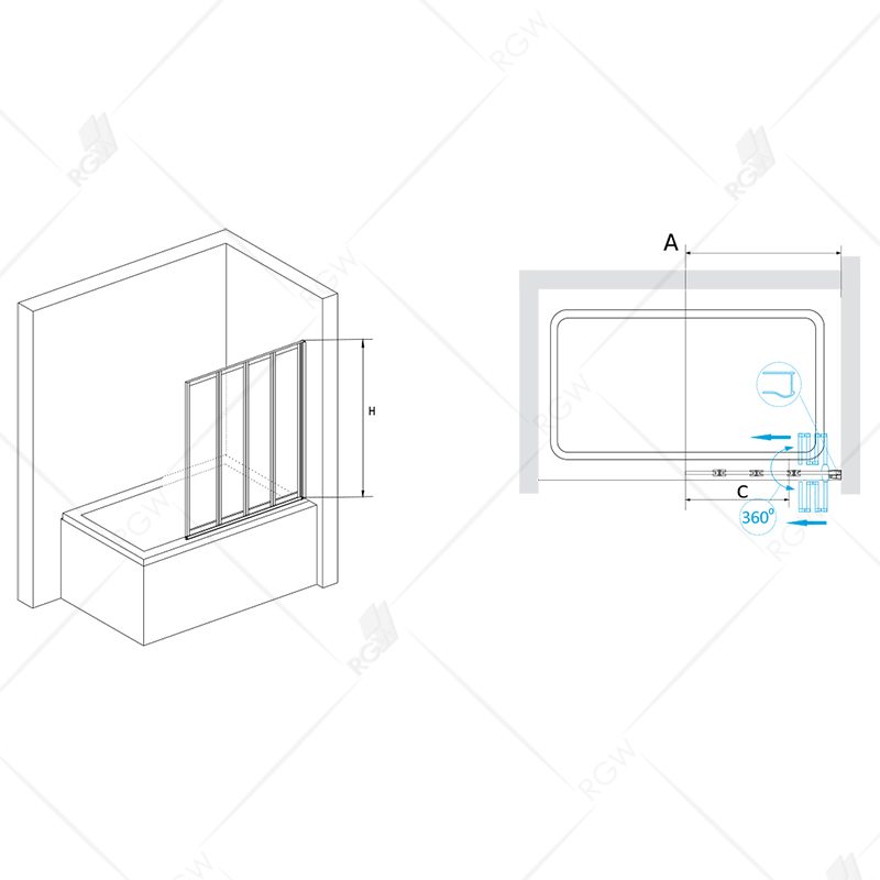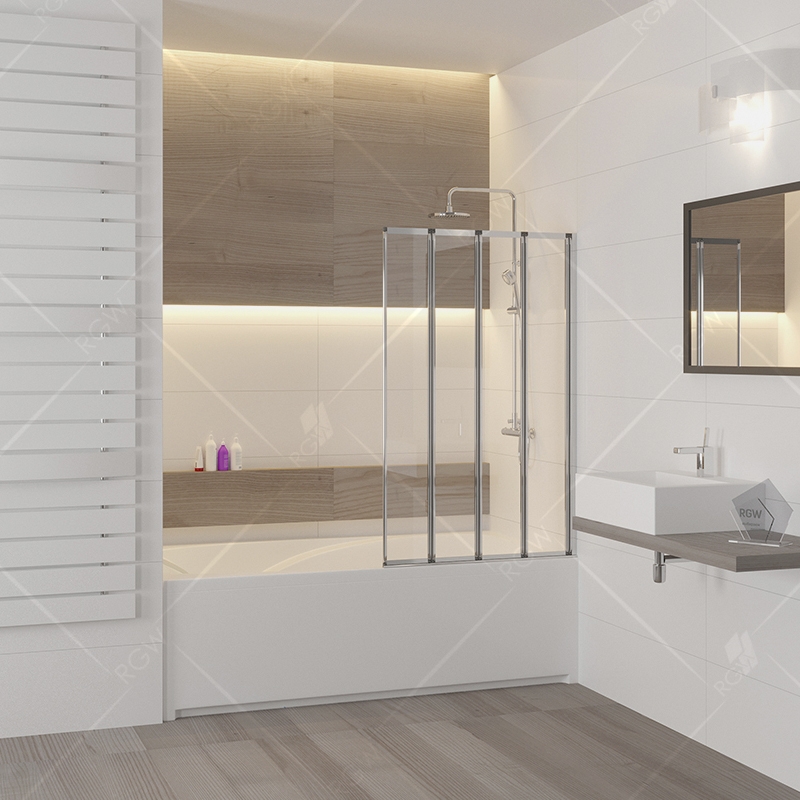 Стеклянная четырехсекционная шторка на ванну RGW Screens SC-23 100x150 03112310-11 cкладная маятниковая. Универсальная установка с левой или правой стороны.