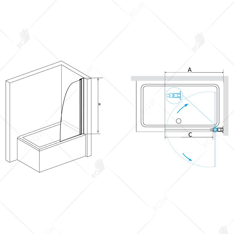 Стеклянная шторка на ванну RGW Screens SC-36 80x150 01113608-11 распашная маятниковая. Универсальная установка с левой или правой стороны.