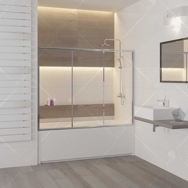 Стеклянная шторка на ванну RGW Screens SC-41 180x150 04114118-11 раздвижная. Три полотна: два сдвижных и одно неподвижное.