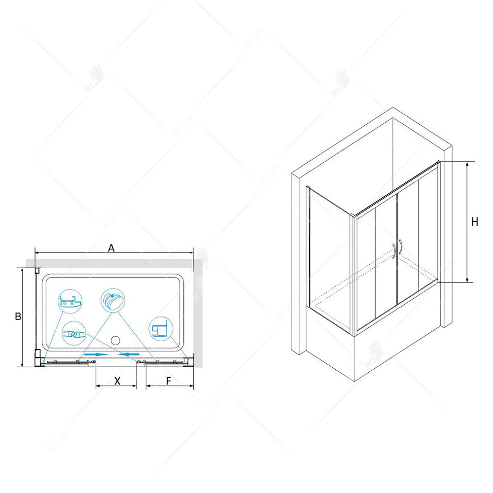 Стеклянная шторка на ванну RGW Screens SC-62 170x70x150 01119177-11. Две раздвижные двери с центра.